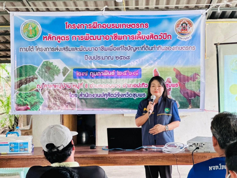 นายจิรศักดิ์ บริบูรณ์ สหกรณ์จังหวัดชุมพร มอบหมายให้นางณัชกช นามจันทร์ ผู้อำนวยการกลุ่มจัดตั้งและส่งเสริมสหกรณ์ พร้อมด้วยเจ้าหน้าที่กลุ่มจัดตั้งและส่งเสริมสหกรณ์ และกลุ่มส่งเสริมสหกรณ์ 3 เข้าร่วมเป็นเกียรติโครงการฝึกอบรมเกษตรกร หลักสูตร การพัฒนาอาชีพการเลี้ยงสัตว์ปีก ภายใต้โครงการส่งเสริมและพัฒนาอาชีพเพื่อแก้ไขปัญหาที่ดินทำกินของเกษตรกร ปีงบประมาณ 2568